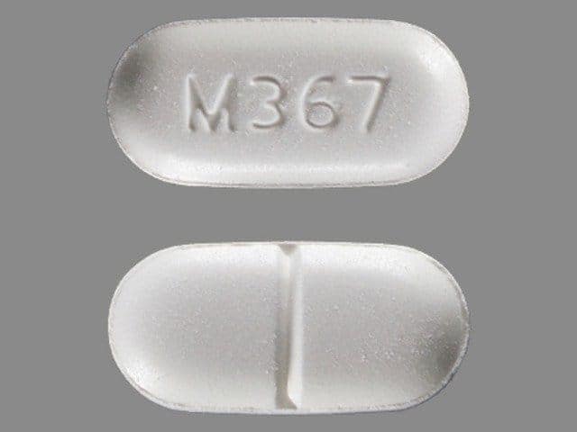 – Form: White, oblong tablet with M367 imprint